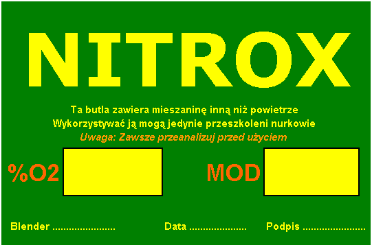 - Dodatkowe procedury bezpieczeństwa - przed nurkowaniem, każdy nurek powinien osobiście sprawdzić zawartość tlenu w mieszaninie i określić MOD.